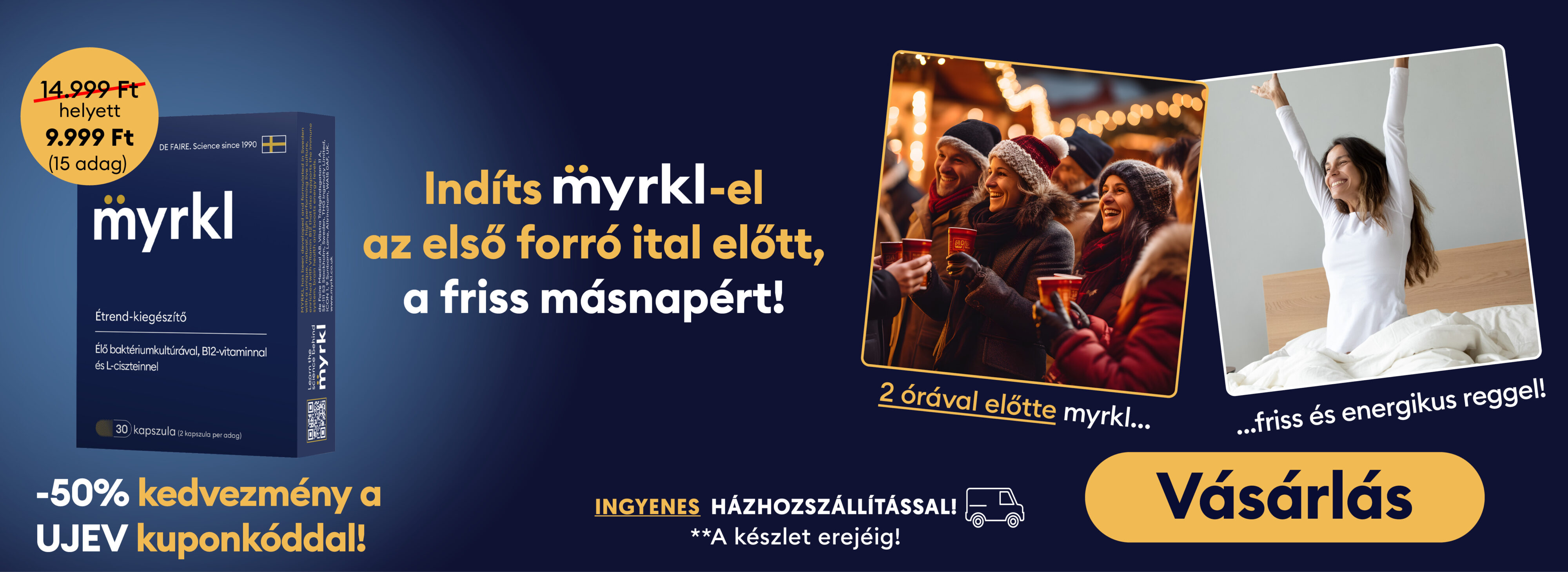 - A myrkl egy több mint 30 éves kutatómunka során, a svéd De Faire Medical által kifejlesztett étrend-kiegészítő készítmény, amely segíthet csökkenteni vagy megelőzni a másnapi kellemetlenségek kialakulását. Italok elfogyasztása előtt alkalmazandó.